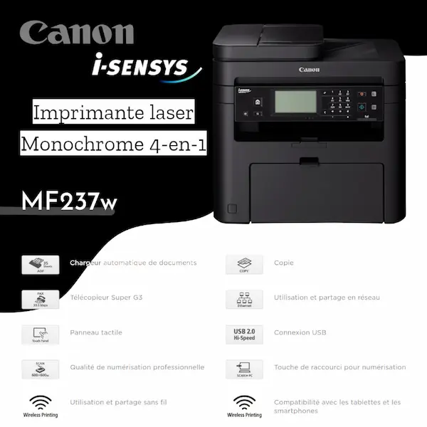 Imprimante Canon Laser Monochrome MF237w 4-en-1